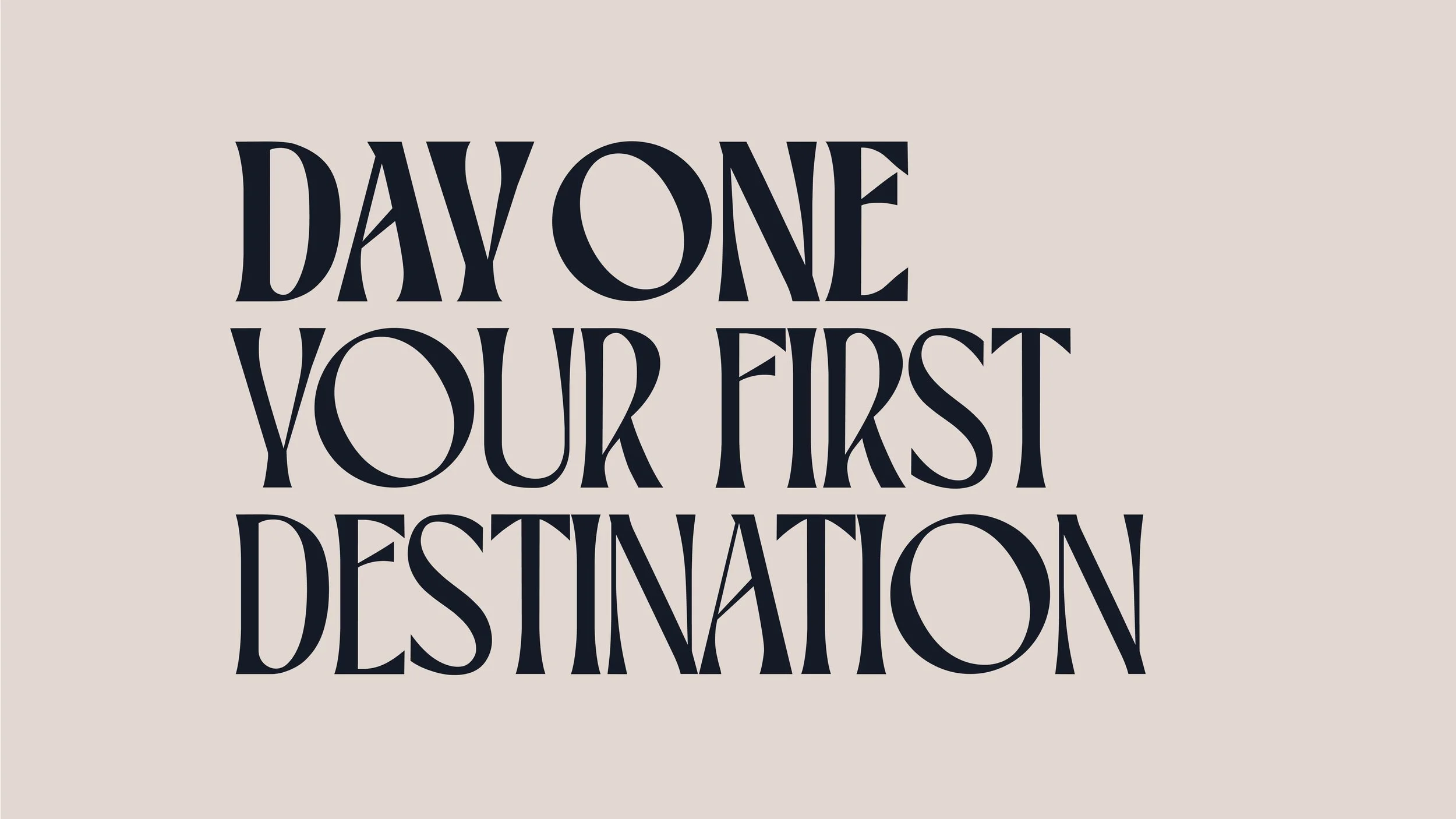 Het logo vormt het fundament van de visuele identiteit. De krachtige serif typografie geeft het merk gewicht en geloofwaardigheid, wat vertrouwen creëert bij zakelijke klanten. Tegelijk zorgt de strakke afwerking ervoor dat het logo eigentijds en professioneel blijft. Het symbool in de “O” verwijst naar richting en beweging, en fungeert als visuele metafoor voor begeleiding en controle binnen complexe reistrajecten. Daarmee verbeeldt het logo de kern van Day One Travel: één duidelijk startpunt en één centraal aanspreekpunt voor elke zakelijke reis.